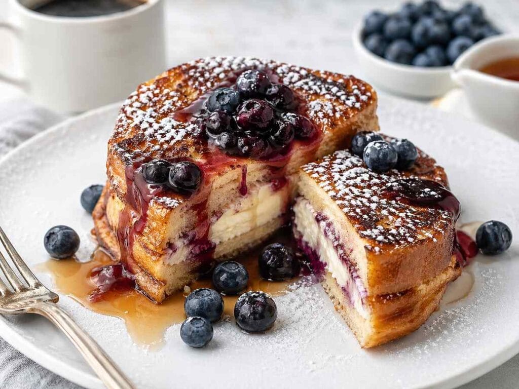 This recipe looks fancy, but it is surprisingly easy to make at home. The outside of the French toast becomes golden and buttery, while the inside stays soft, creamy, and full of cheesecake flavor. The blueberries add a bright fruity taste that balances the rich filling perfectly.