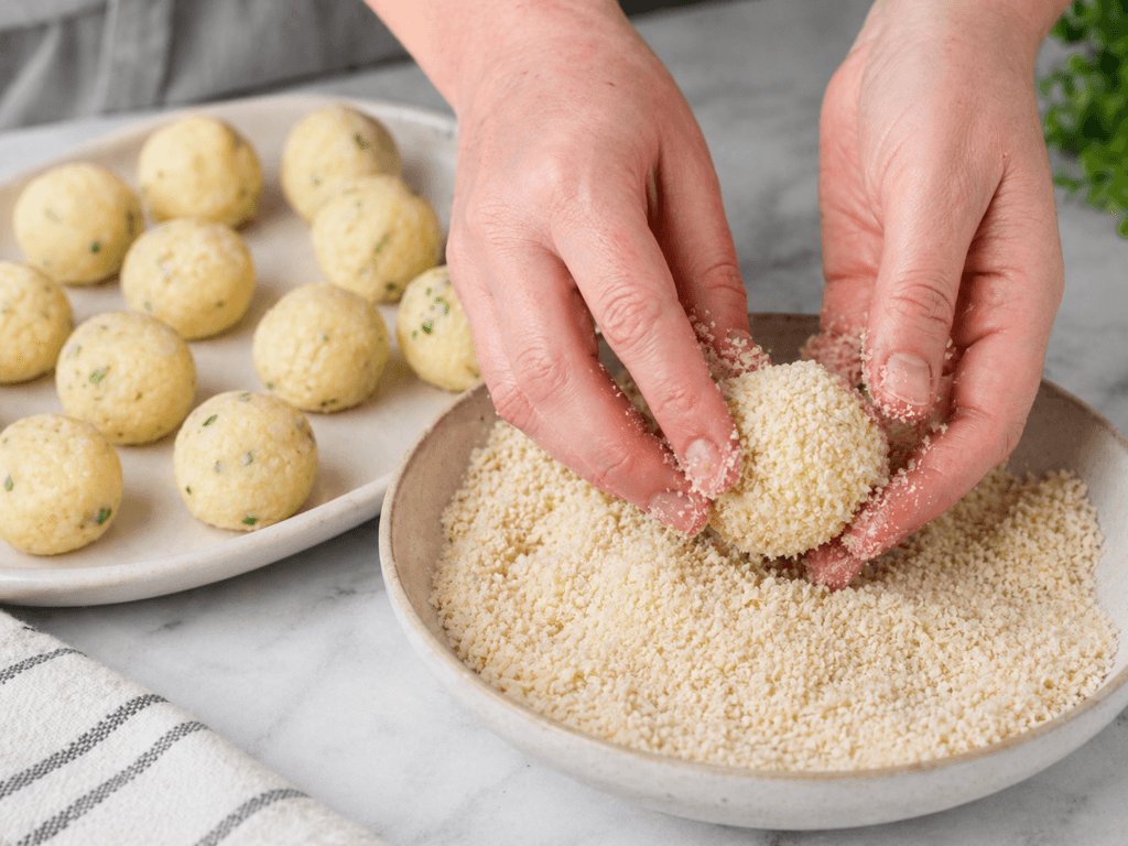 For best results, freeze them before cooking. Place shaped and coated bites on a baking sheet and freeze until solid. Then transfer them to a freezer-safe bag.