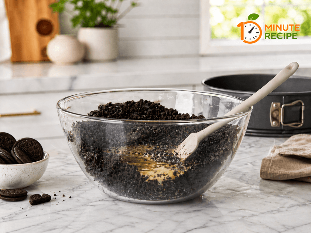 Add the Oreo cookies to a food processor and blend until they become fine crumbs. If you do not have a food processor, place the cookies in a zip-top bag and crush them with a rolling pin.